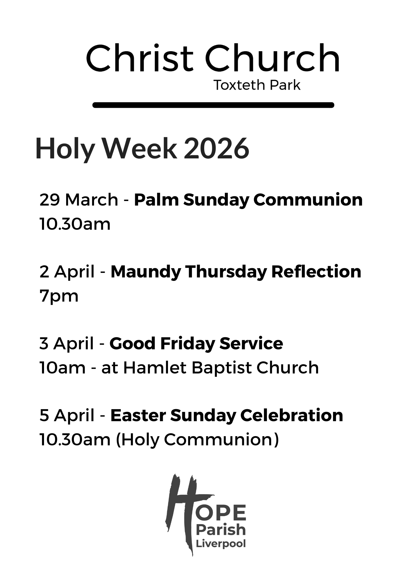 We are part of the Diocese of Liverpool (Church of England), and Hope Parish Liverpool